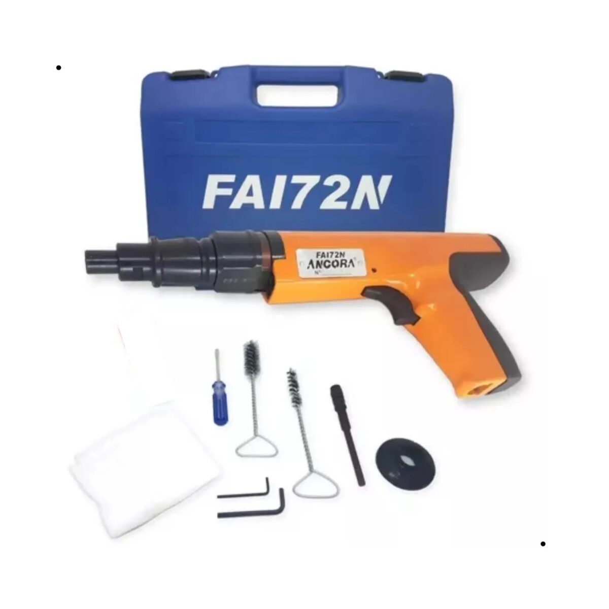 Ferramenta de ação indireta semi-automática acionada à pólvora para fixação de pinos em concreto ou aço estrutural.